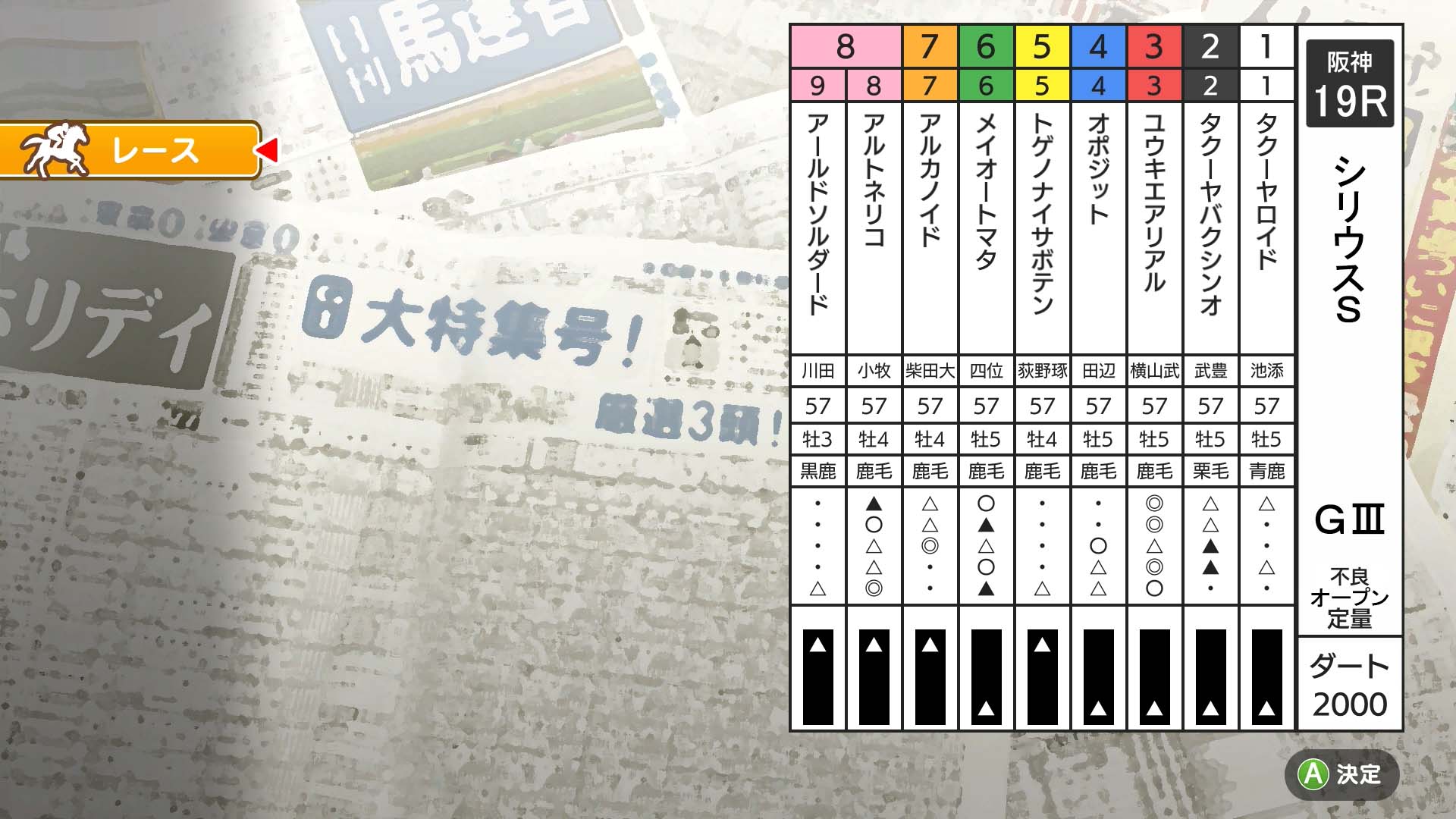 阪神(ダ)2000m 3歳以上 オープン 定量 9頭