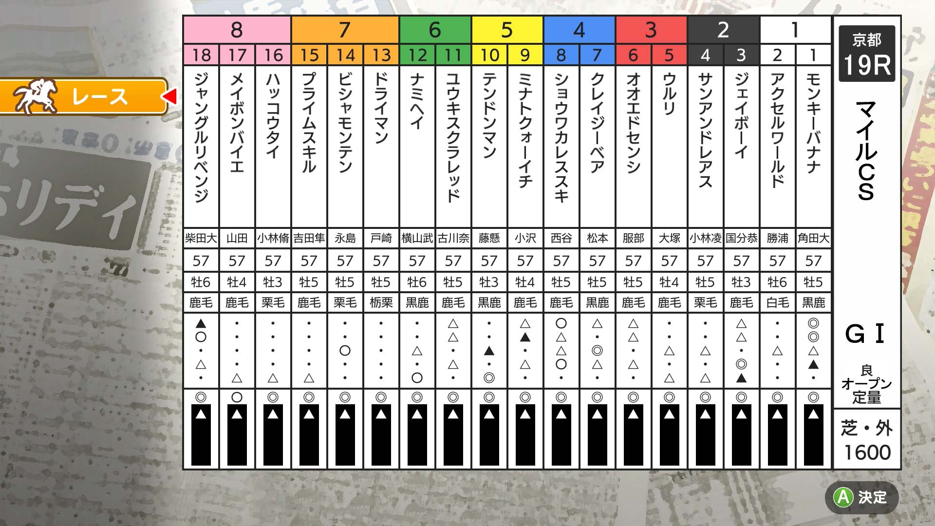 京都(芝・外)1600m 3歳以上 オープン 定量 18頭