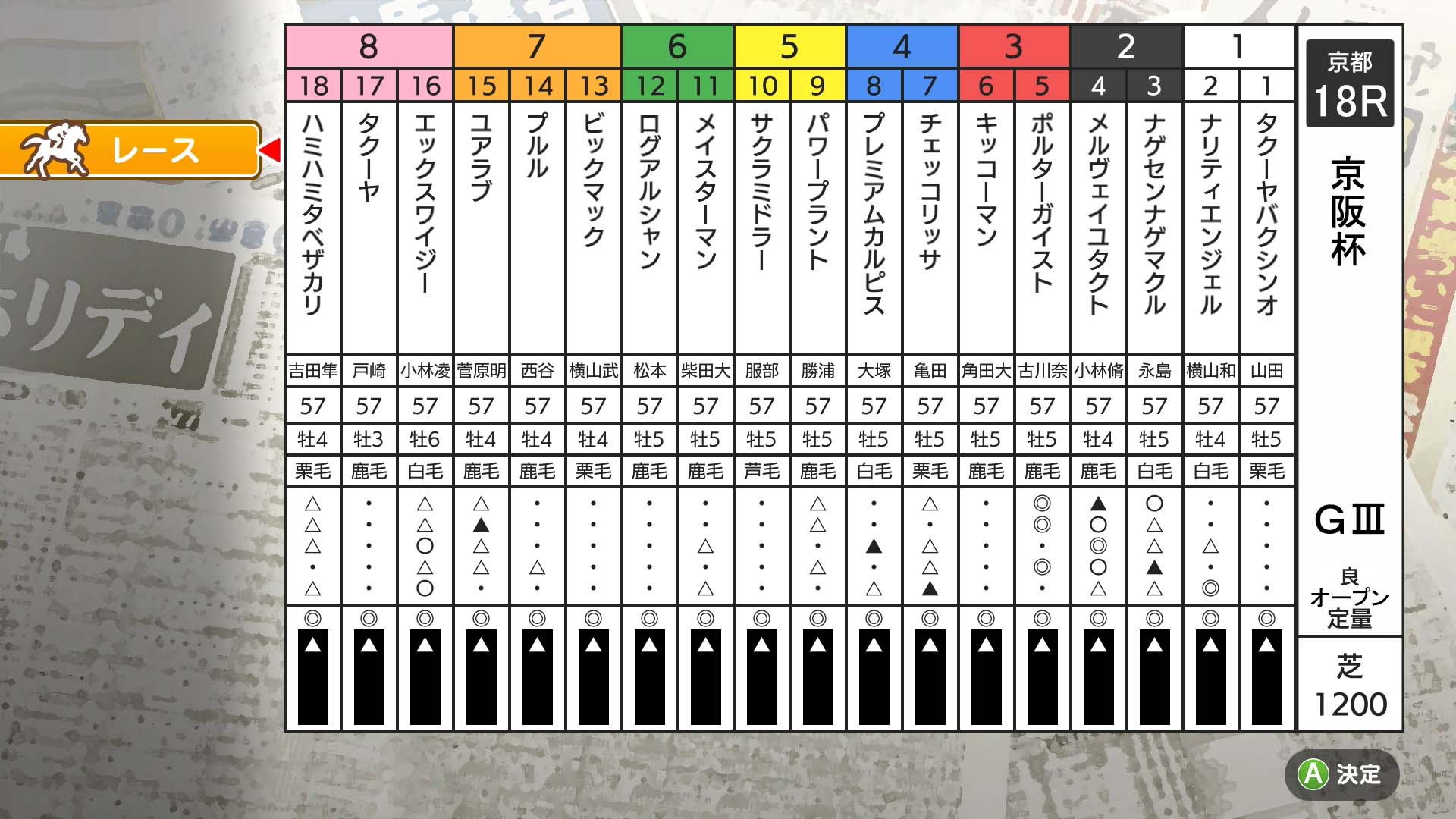 京都(芝)1200m 3歳以上 オープン 定量 18頭