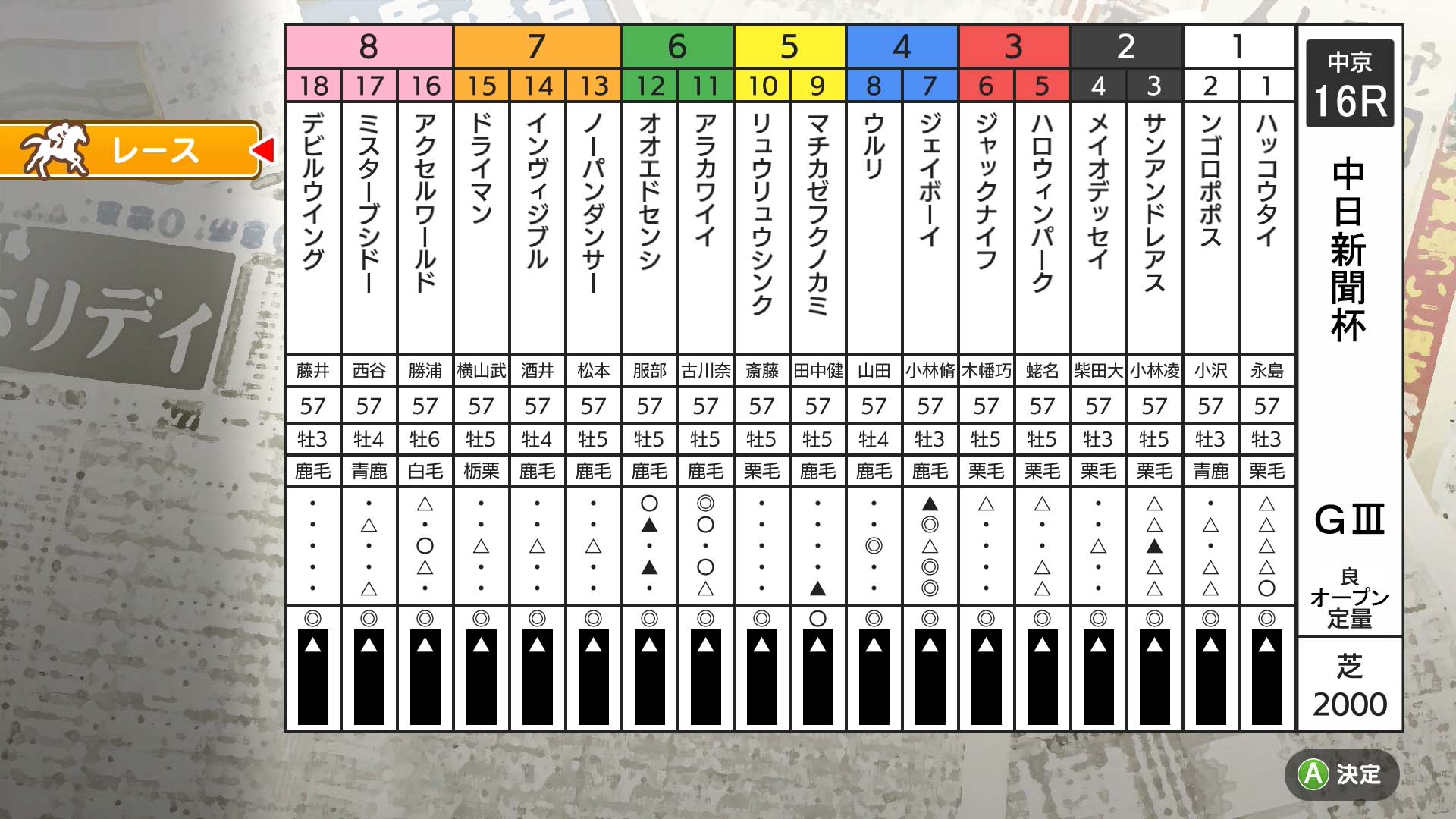 中京(芝)2000m 3歳以上 オープン 定量 18頭