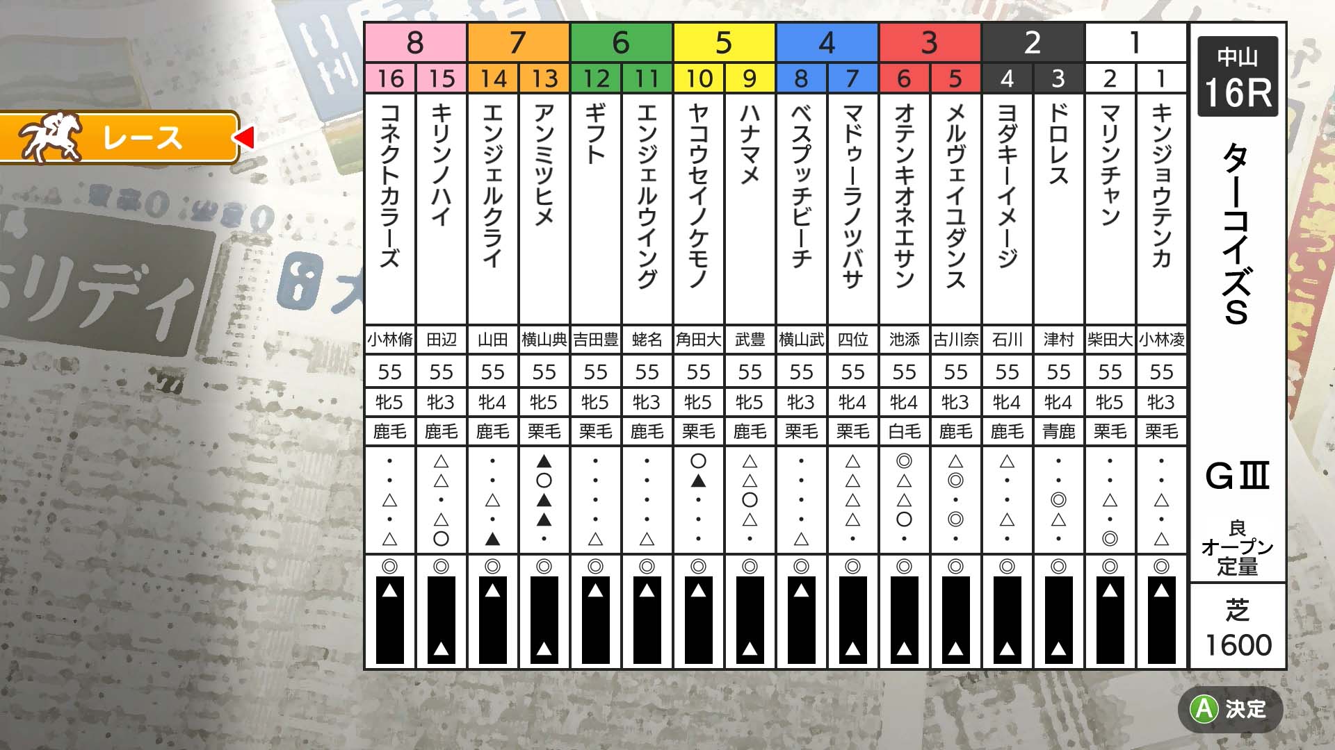 中山(芝)1600m 3歳以上牝馬限定 オープン 定量 16頭