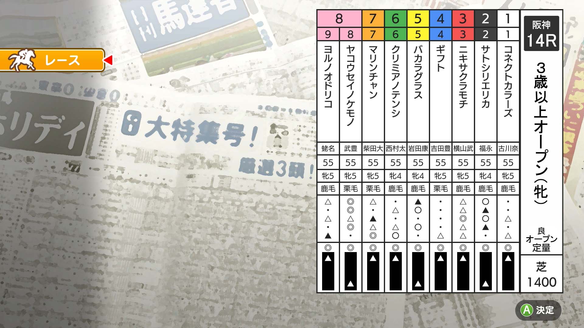 阪神(芝)1400m 3歳以上牝馬限定 オープン 定量 9頭