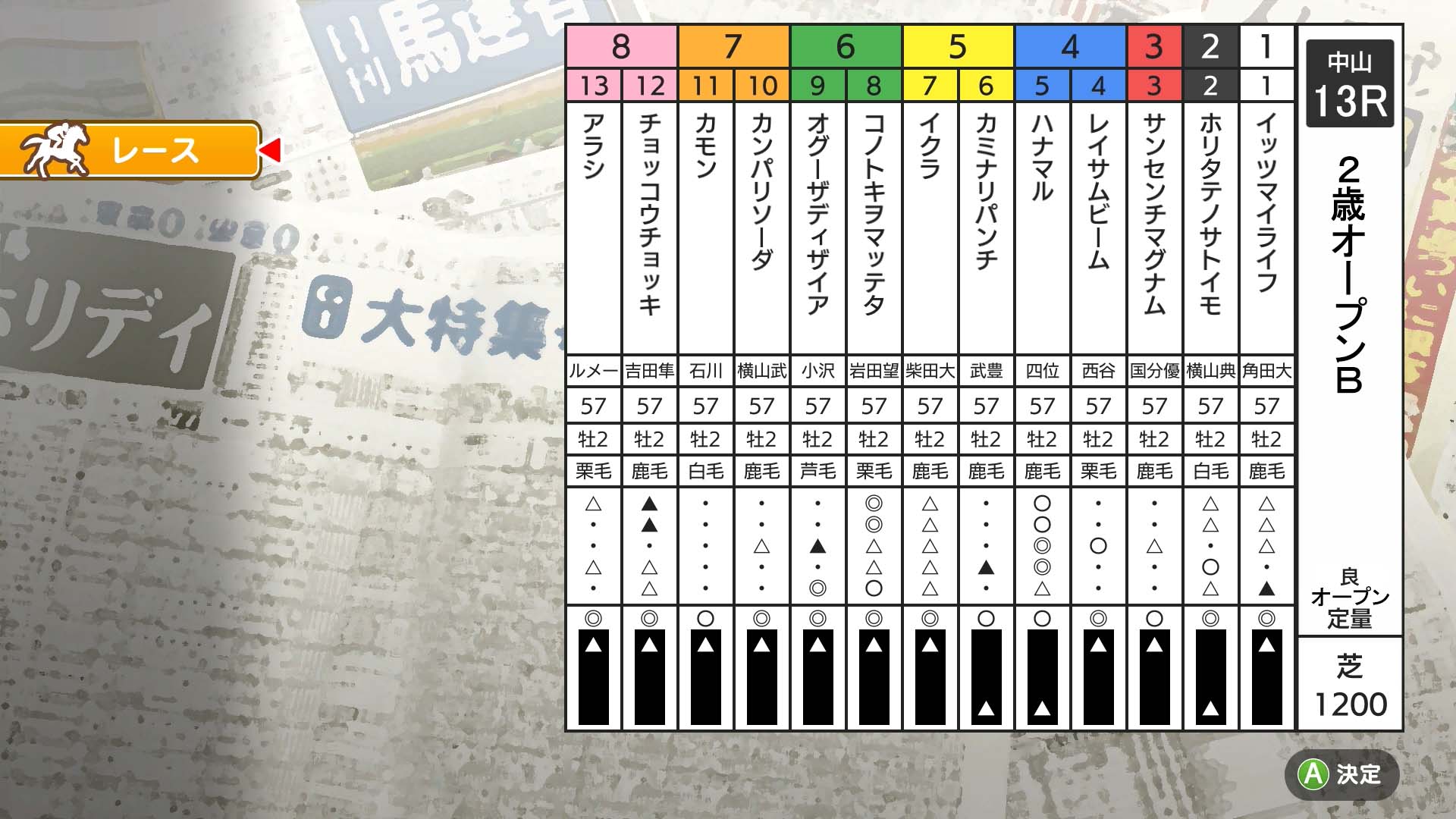 中山(芝)1200m 2歳 オープン 定量 13頭