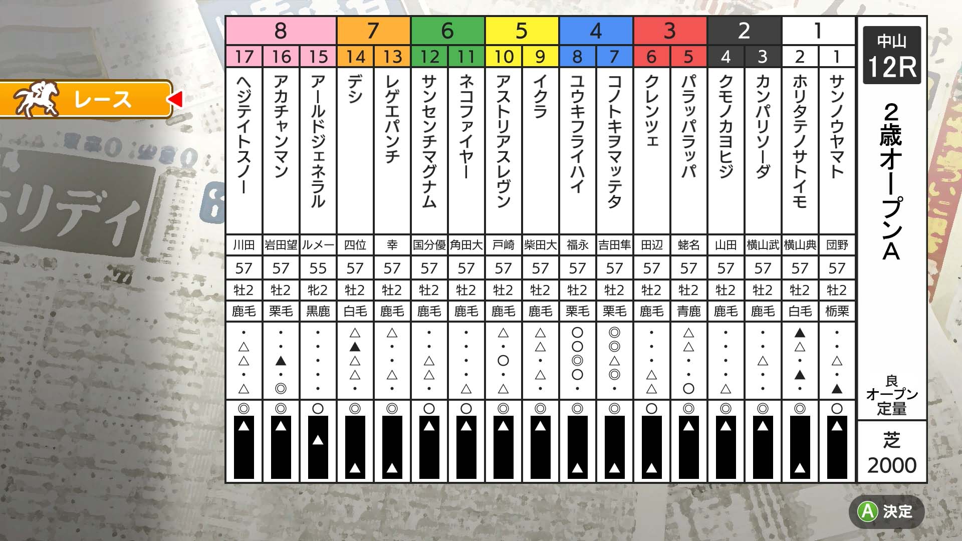 中山(芝)2000m 2歳 オープン 定量 17頭