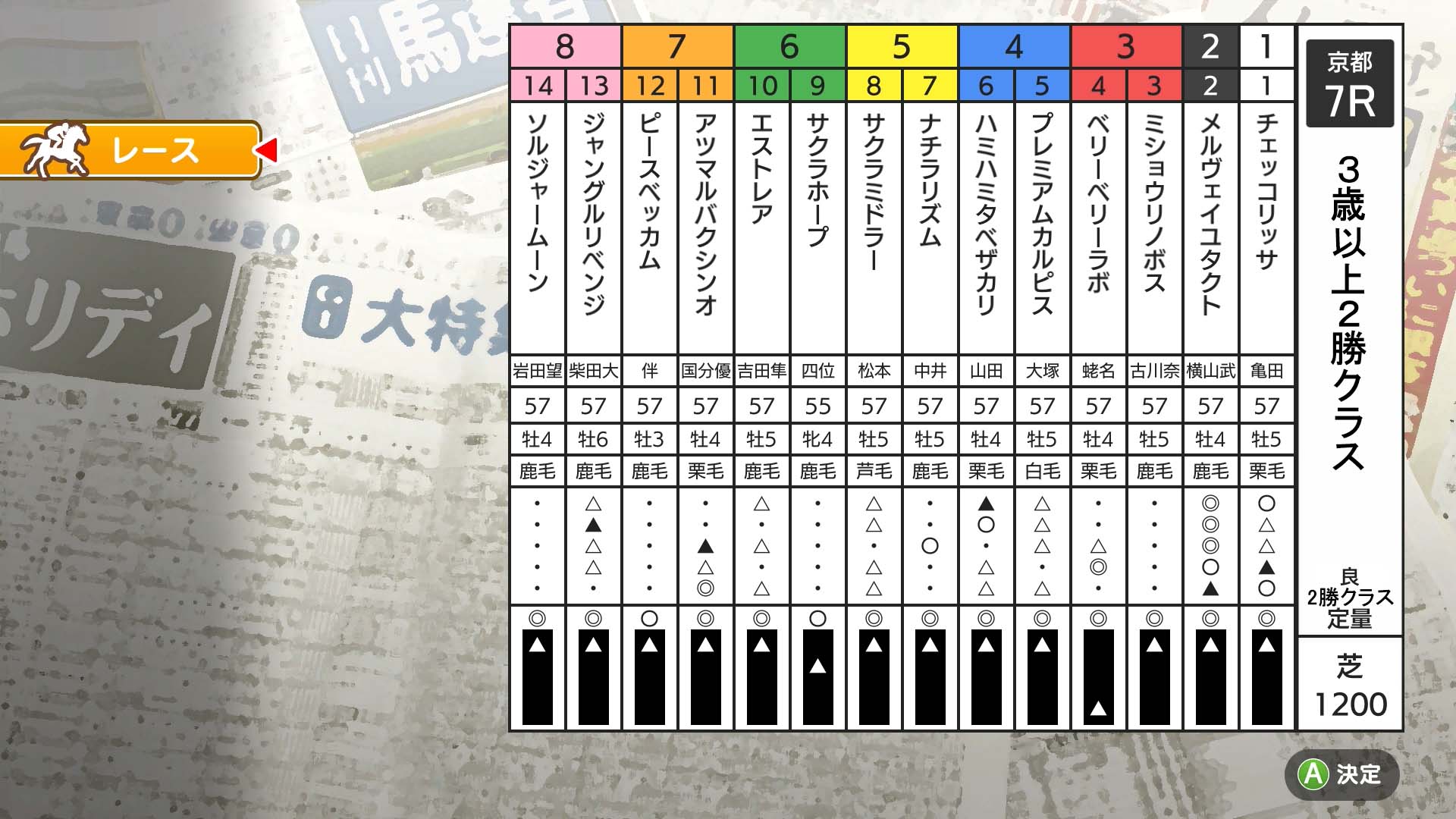 京都(芝)1200m 3歳以上 2勝クラス 定量 14頭
