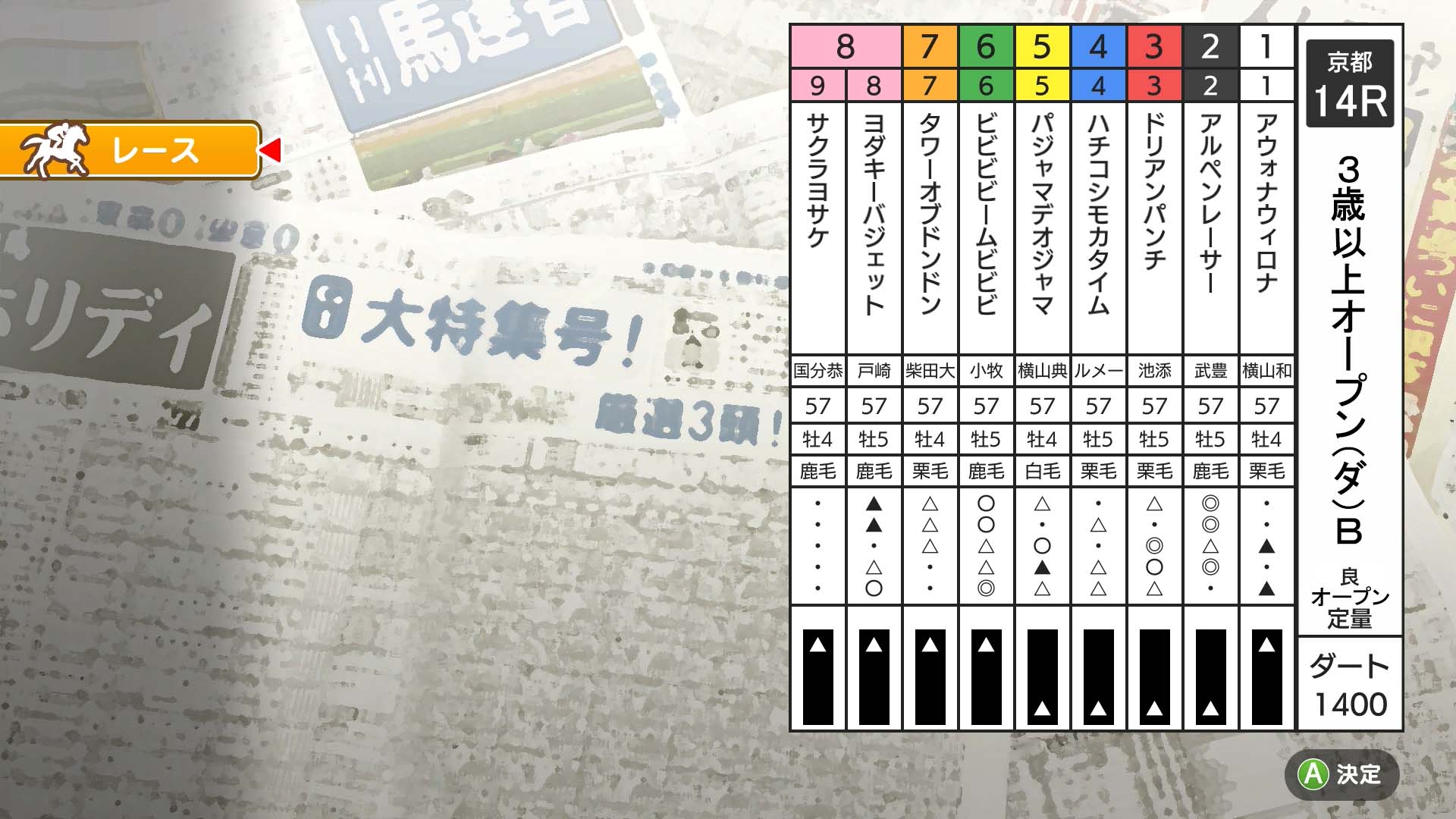 京都(ダ)1400m 3歳以上 オープン 定量 9頭
