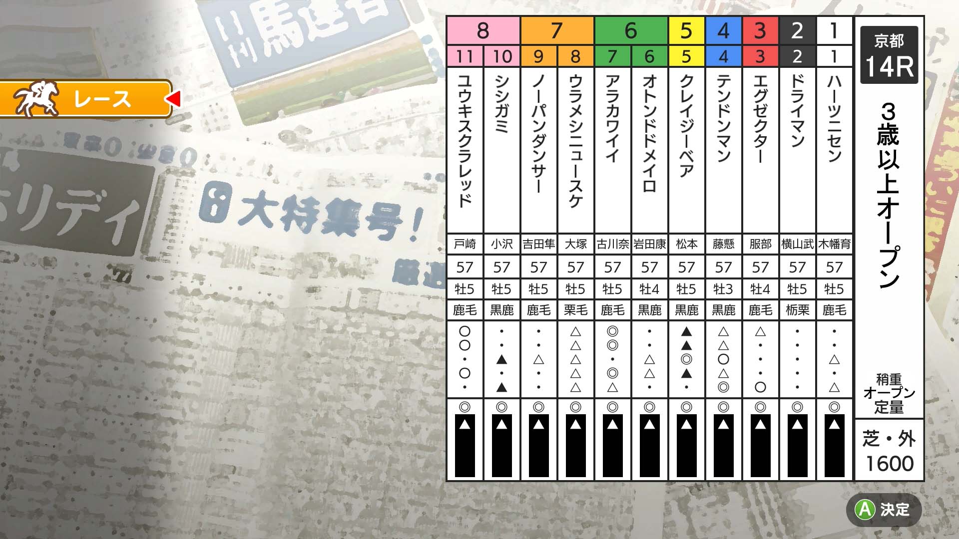 京都(芝・外)1600m 3歳以上 オープン 定量 11頭
