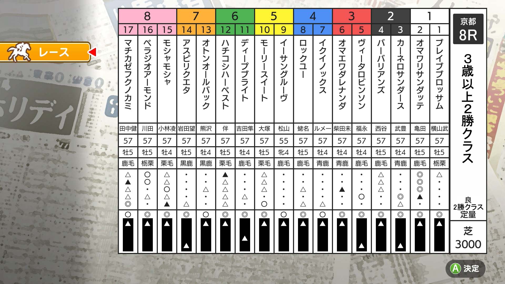 京都(芝)3000m 3歳以上 2勝クラス 定量 18頭