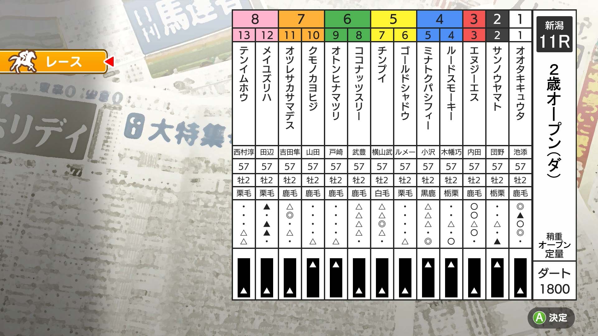 新潟(ダ)1800m 2歳 オープン 定量 13頭
