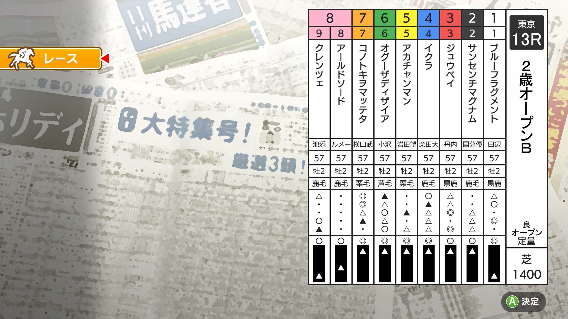 東京(芝)1400m 2歳 オープン 定量 9頭