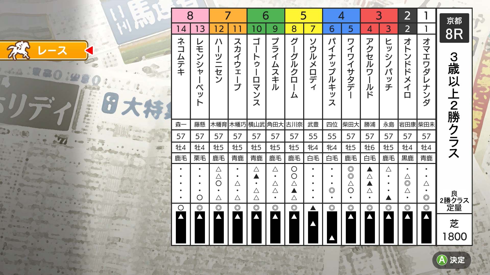 京都(芝)1800m 3歳以上 2勝クラス 定量 14頭