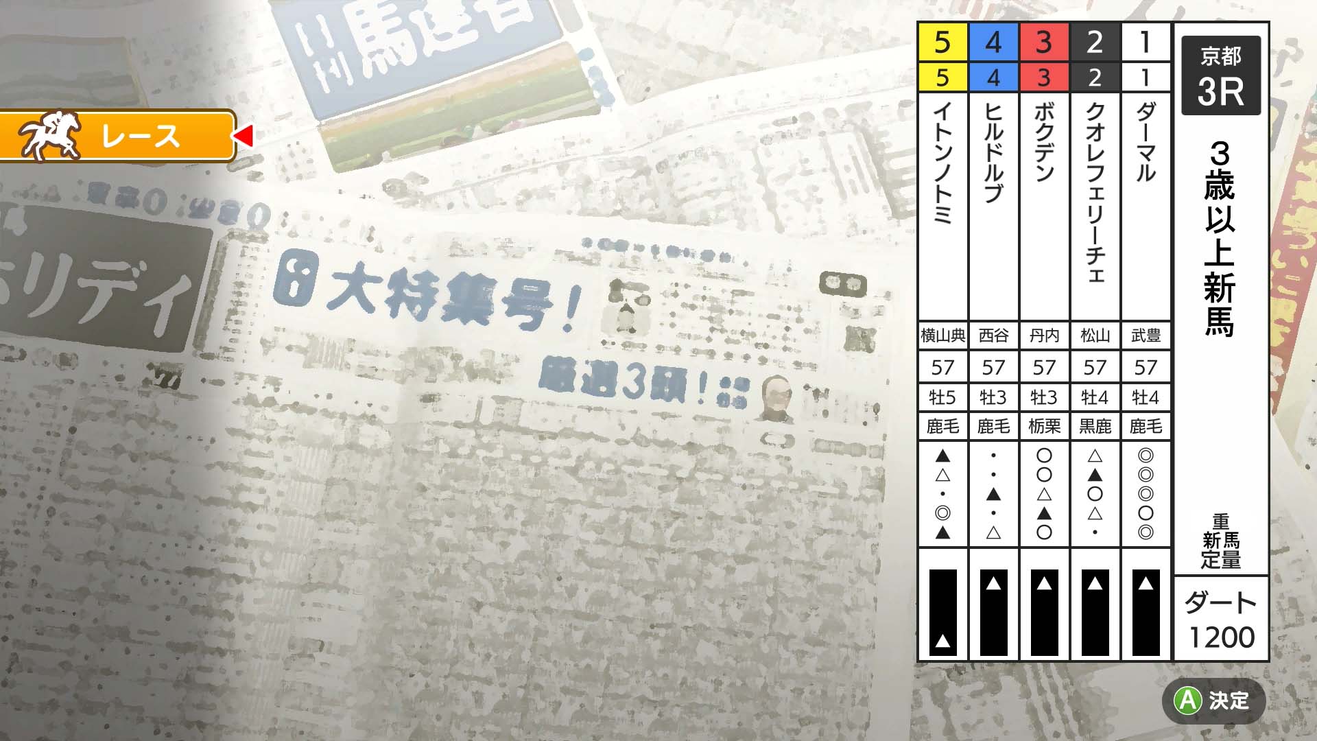 京都(ダ)1200m 3歳以上 新馬 定量 5頭
