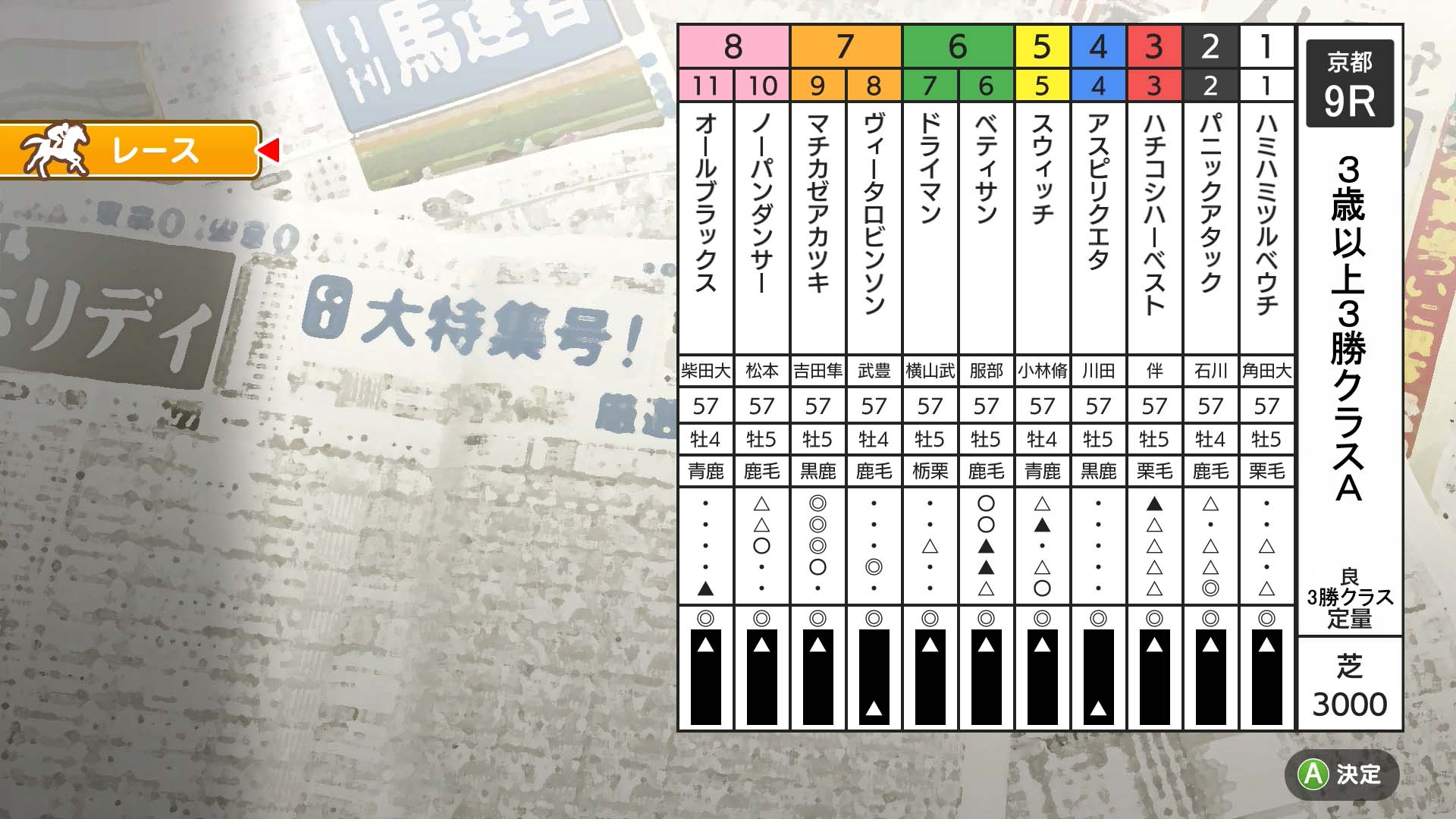 京都(芝)3000m 3歳以上 3勝クラス 定量 11頭