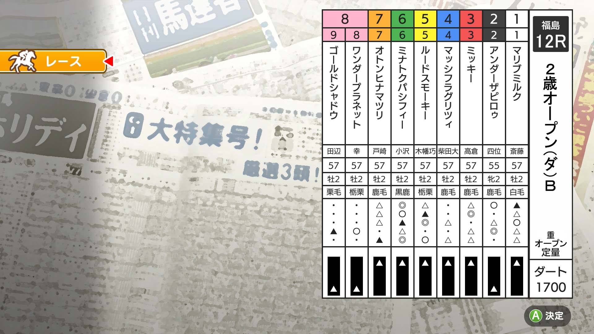 福島(ダ)1700m 2歳 オープン 定量 9頭