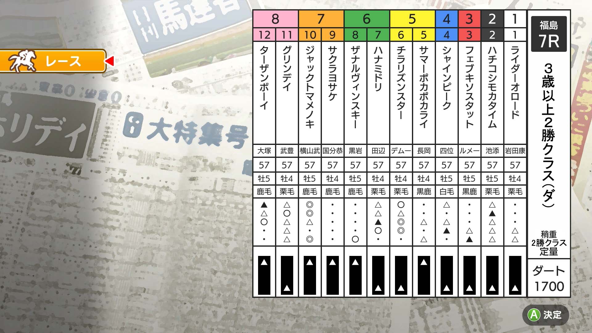 福島(ダ)1700m 3歳以上 2勝クラス 定量 12頭