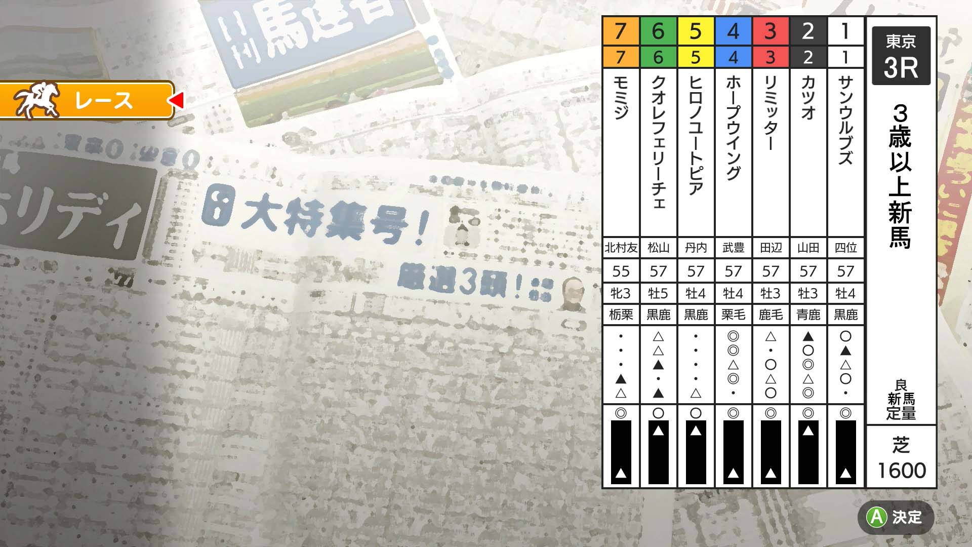 東京(芝)1600m 3歳以上 新馬 定量 7頭