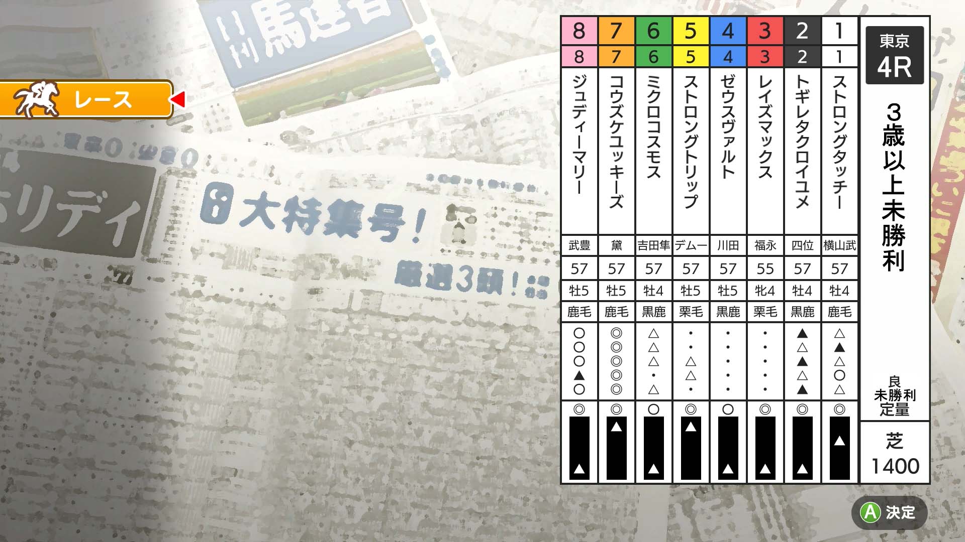 東京(芝)1400m 3歳以上 未勝利 定量 8頭