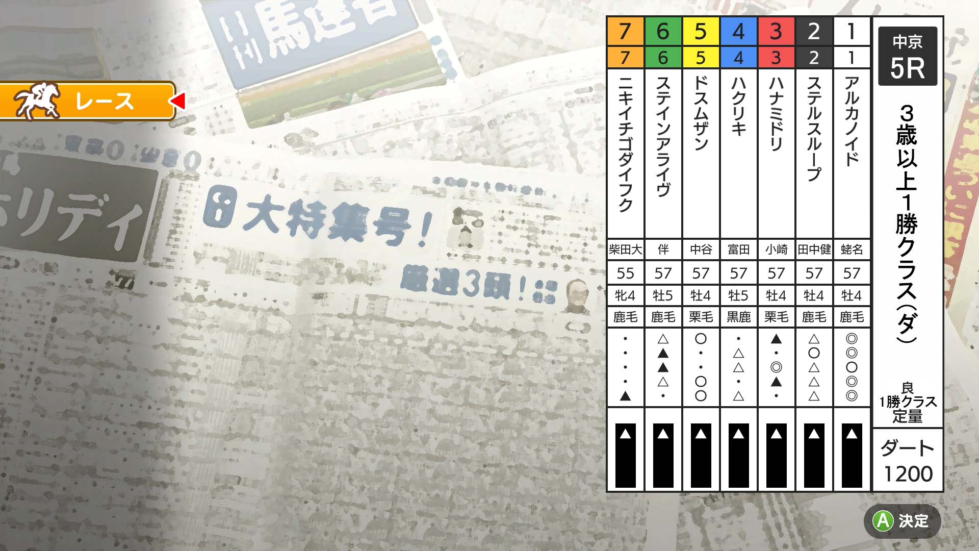 中京(ダ)1200m 3歳以上 1勝クラス 定量 7頭