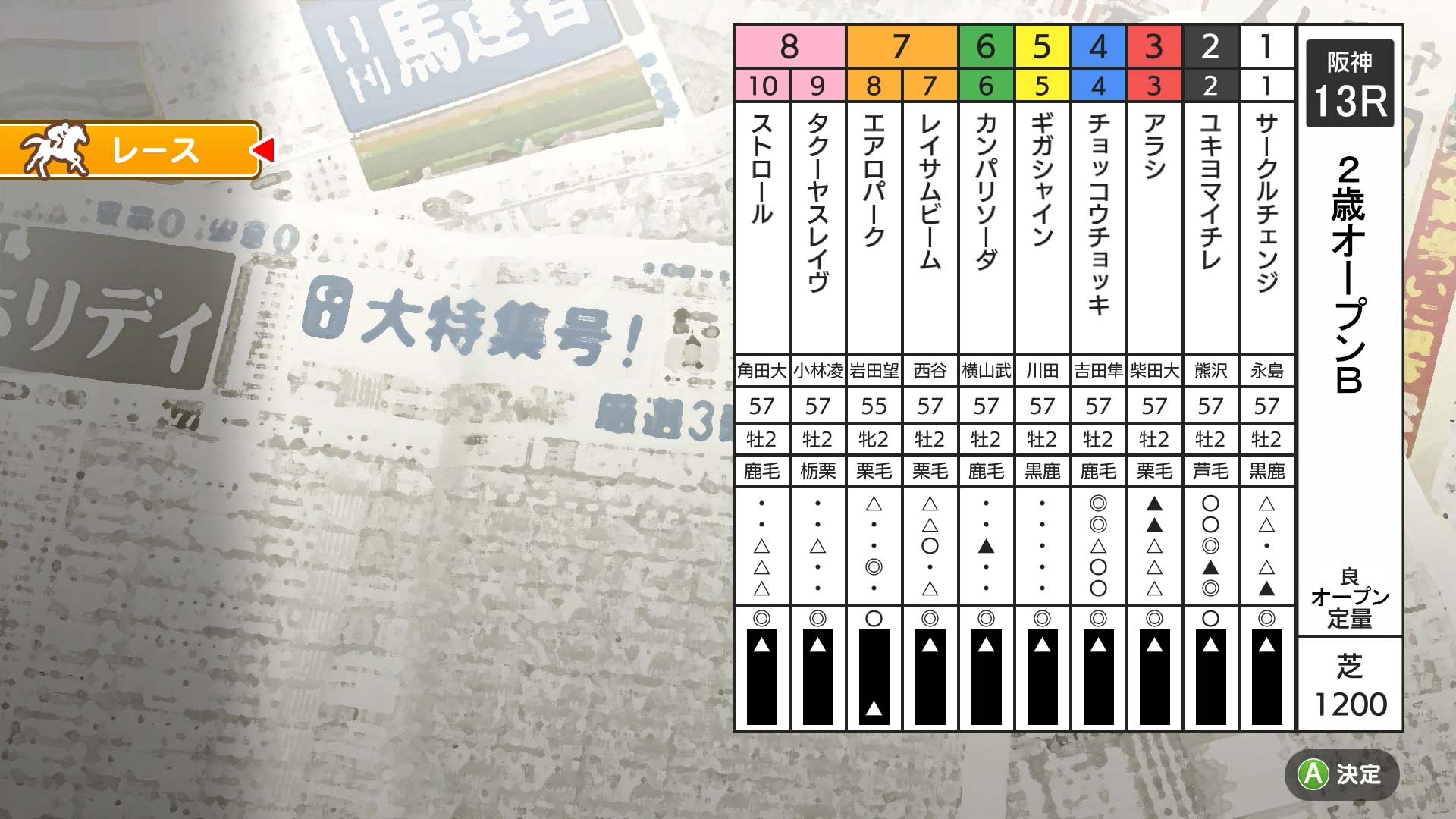 阪神(芝)1200m 2歳 オープン 定量 10頭