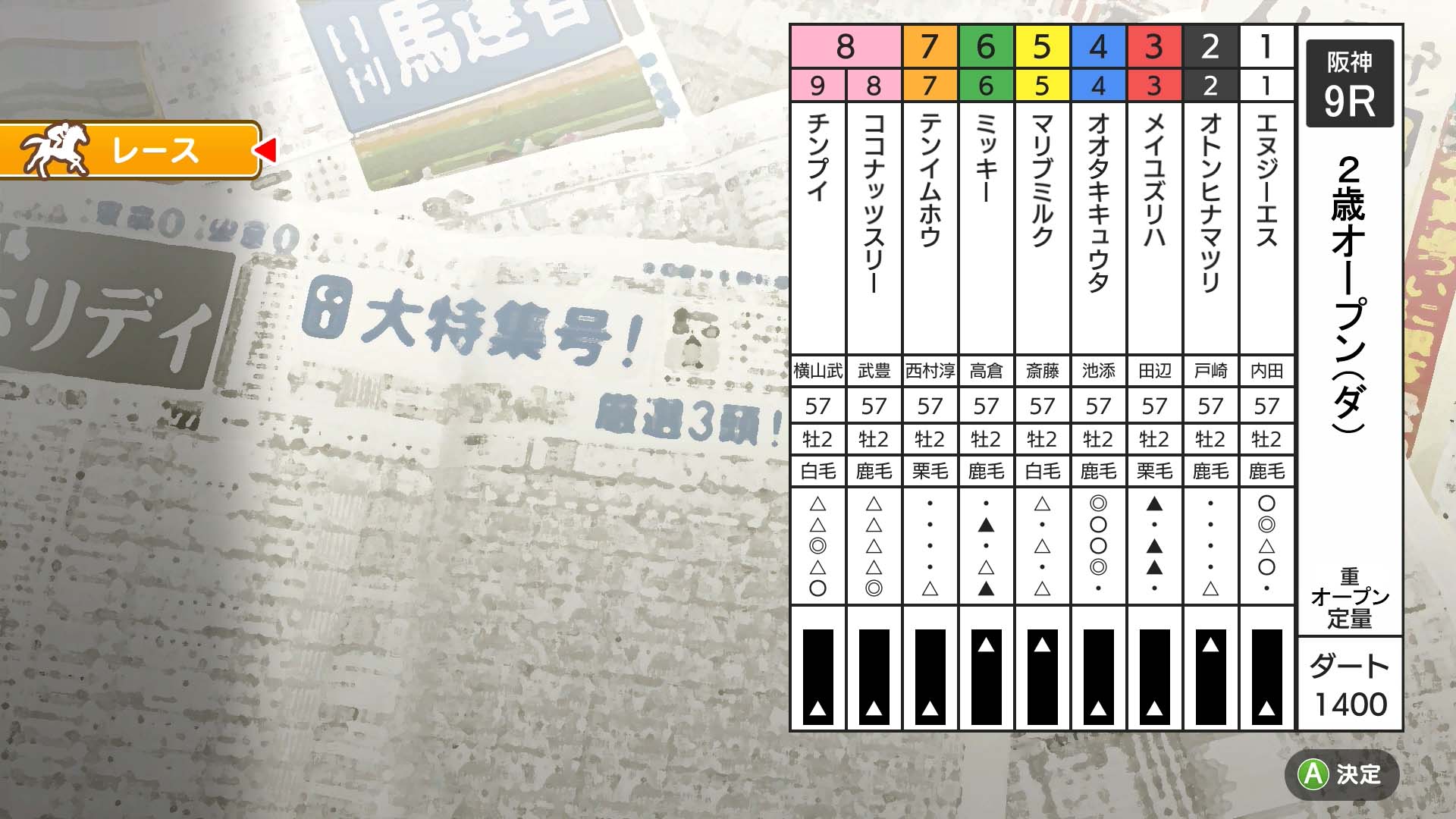 阪神(ダ)1400m 2歳 オープン 定量 9頭