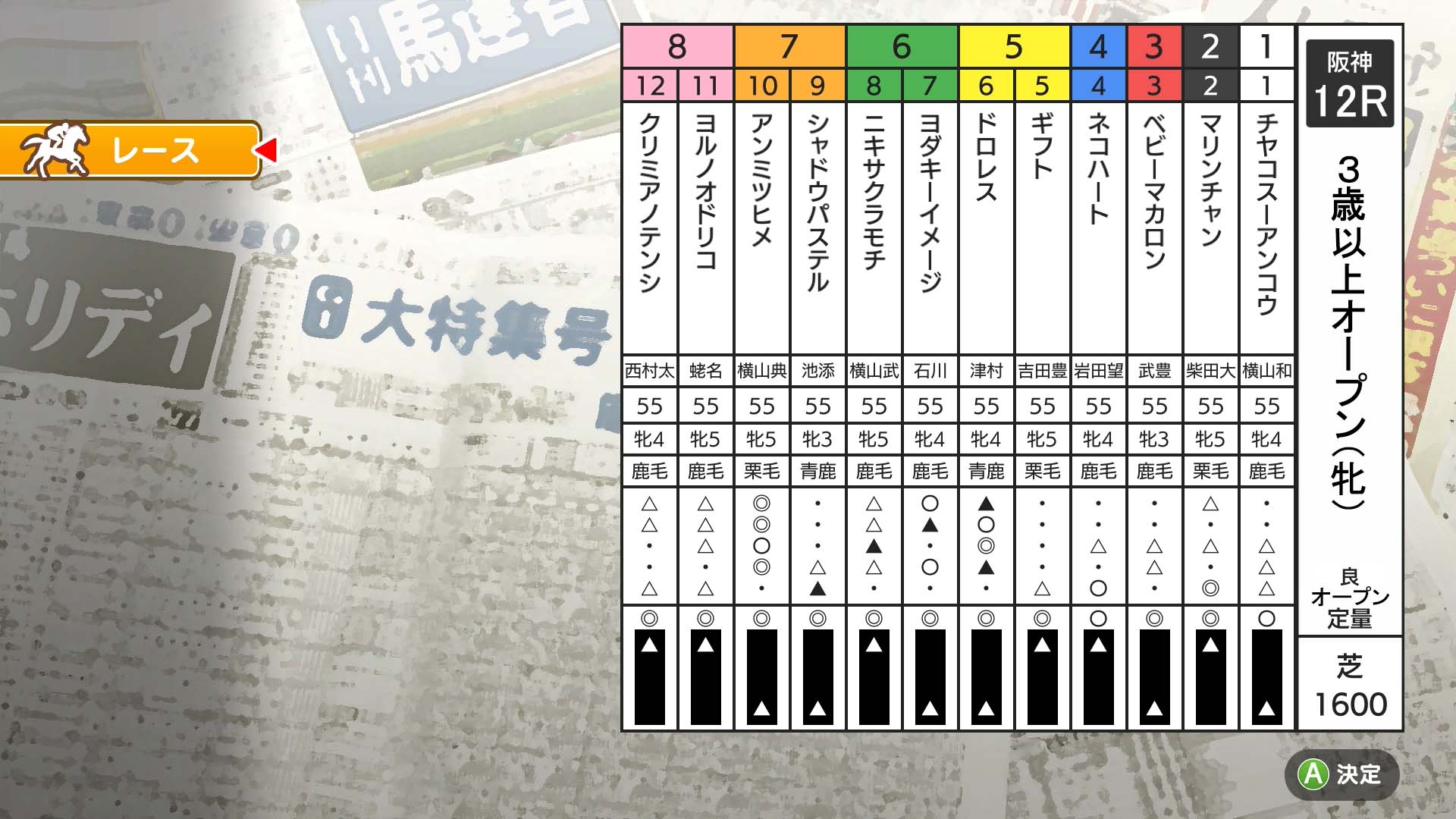 阪神(芝)1600m 3歳以上牝馬限定 オープン 定量 12頭