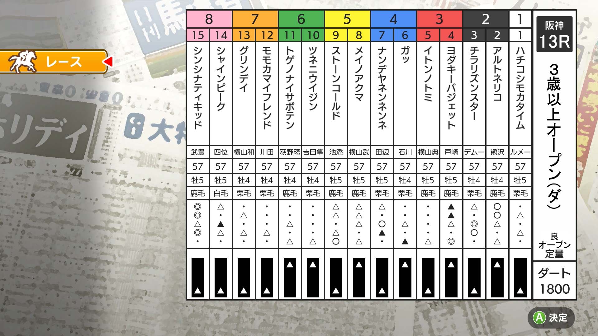 阪神(ダ)1800m 3歳以上 オープン 定量 15頭