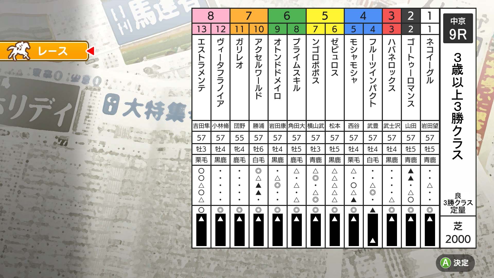 中京(芝)2000m 3歳以上 3勝クラス 定量 13頭
