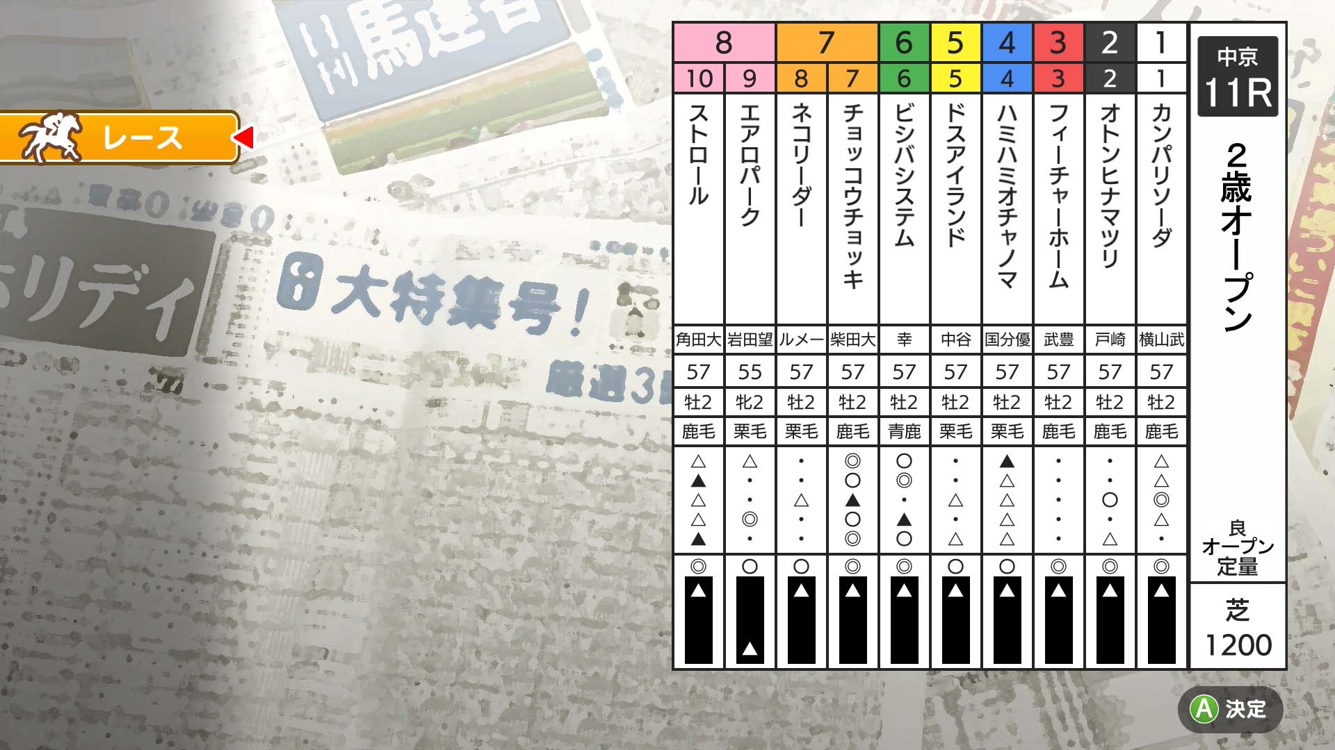中京(芝)1200m 2歳 オープン 定量 10頭