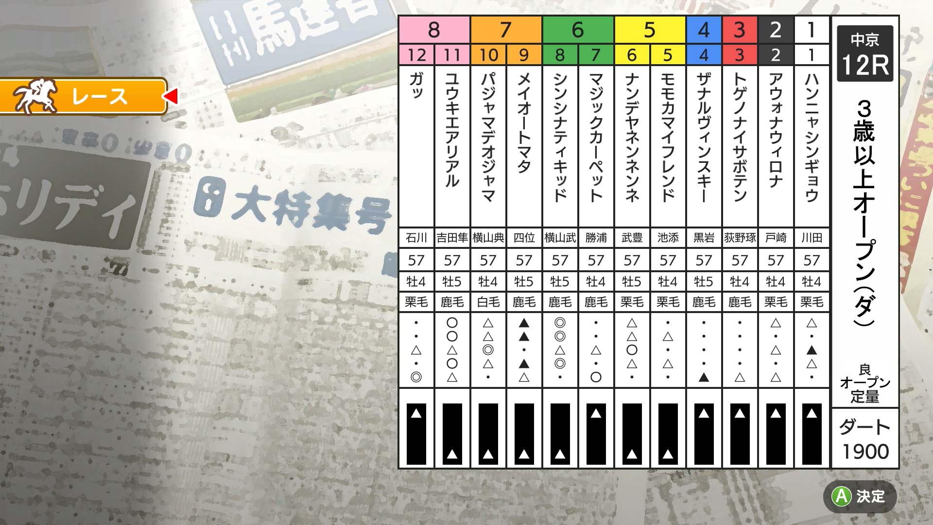 中京(ダ)1900m 3歳以上 オープン 定量 12頭